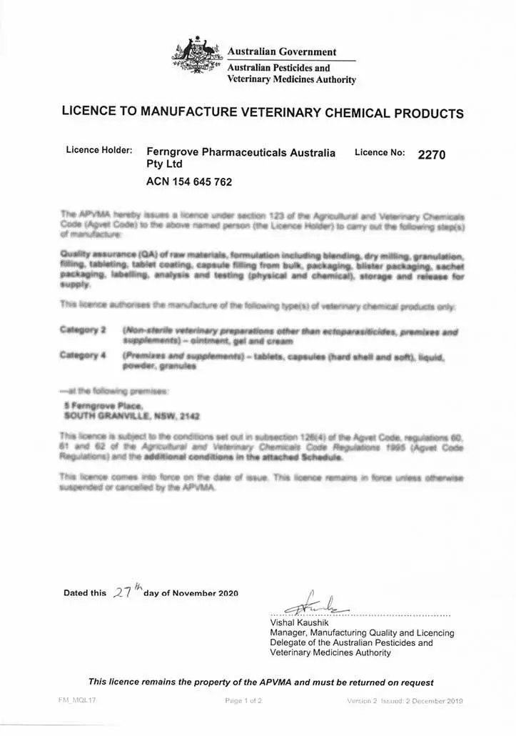 FERNGROVE PHARMACEUTICALS AUSTRALIA (FPA)