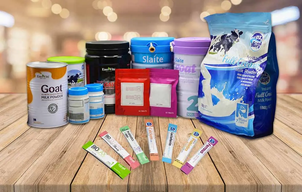 Broad range fill weight content from 2g sachet to 1kg laminated pouch